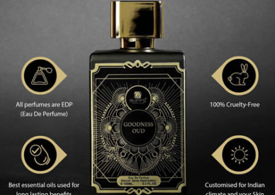 Una gran cantidad de rosas de Turquía y Túnez completan los tonos oscuros y animales del aroma oud.